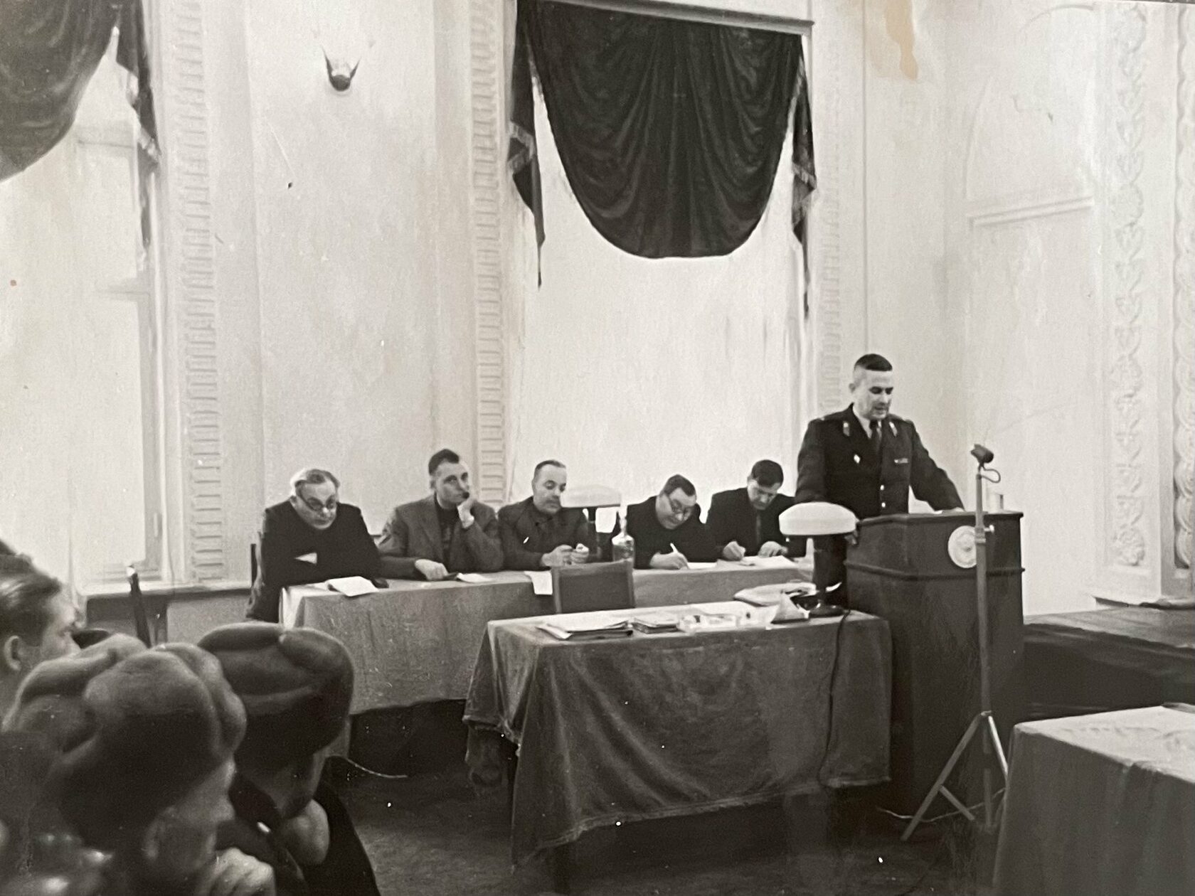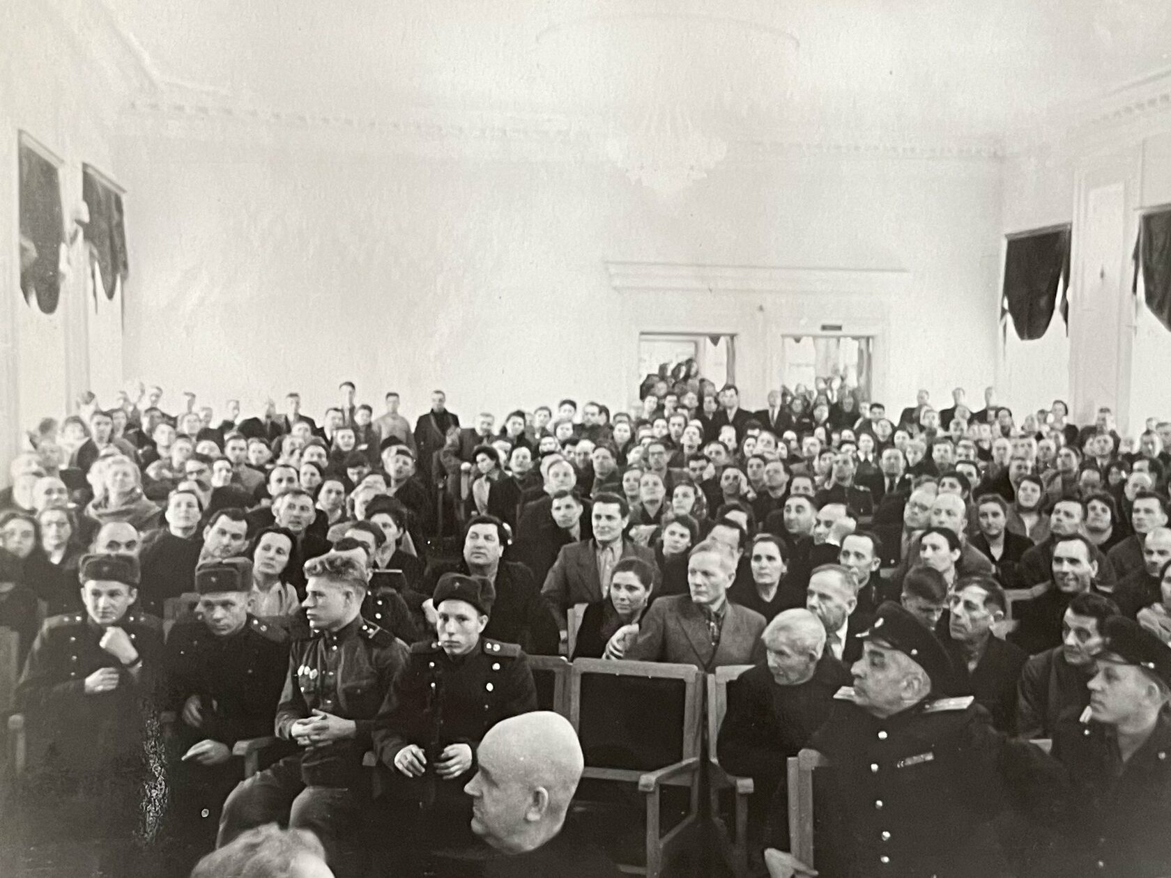 Разумеется, залов судебного заседания мы не имели. Одно время военный трибунал размещался под развалинами здания театра имени Максима Горького. Несколько дней мы прожили в подвале одного из зданий в районе Совбольницы. Одним словом, "квартир" много переменили. Сидели без света, так как электричества в подвалах, понятно, не было, а керосина для освещения взять было негде. Поэтому судебные процессы проводились нами только в самую светлую часть дня, когда естественный свет проникал через многочисленные щели»,- следует из текста мемуаров военного юриста.