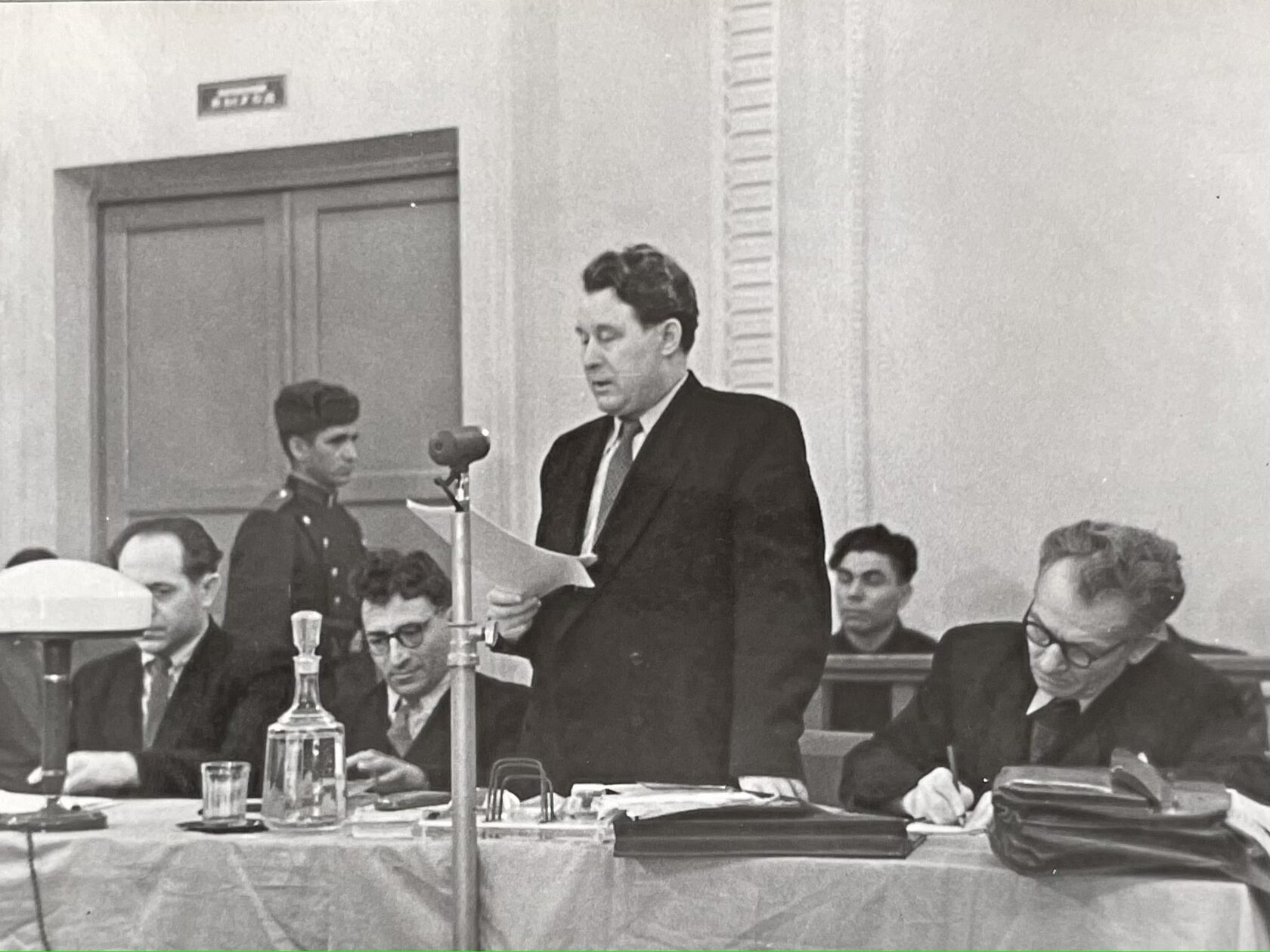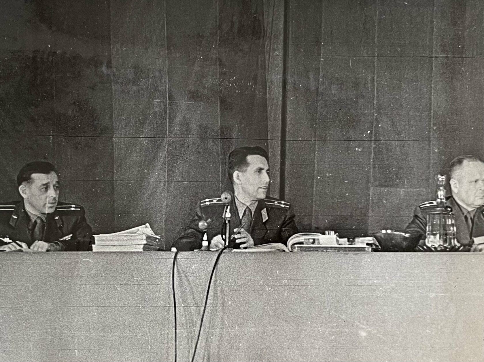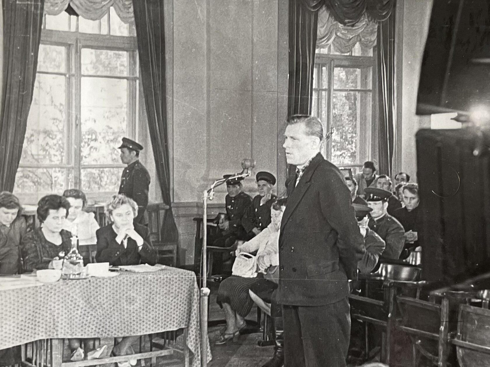 Секретарь суда майор Безруков докладывает суду о явке свидетелей и сторон в судебном заседание.